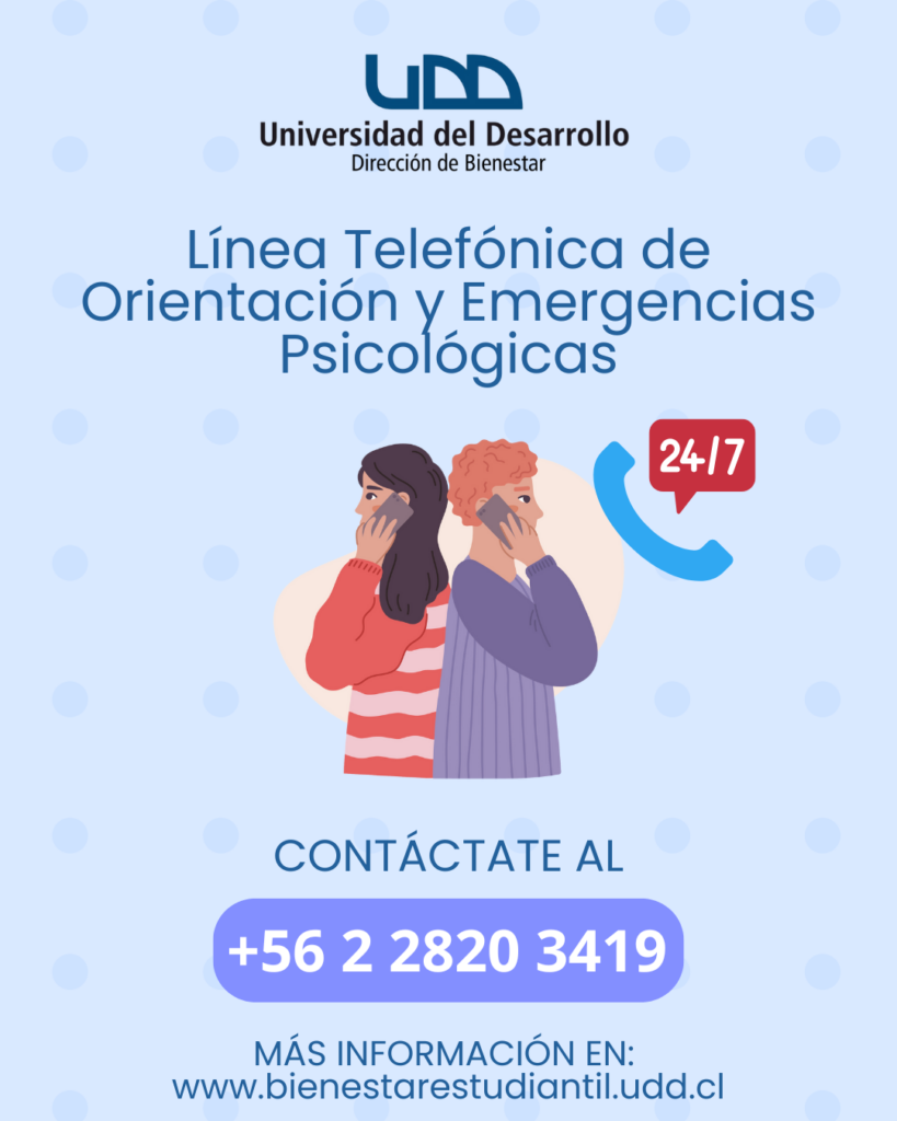 -📞Línea Telefónica de Orientación y Emergencias Psicológicas UDD Llama al +56 2 2820 3419 (se solicita rut para identificación de alumno)